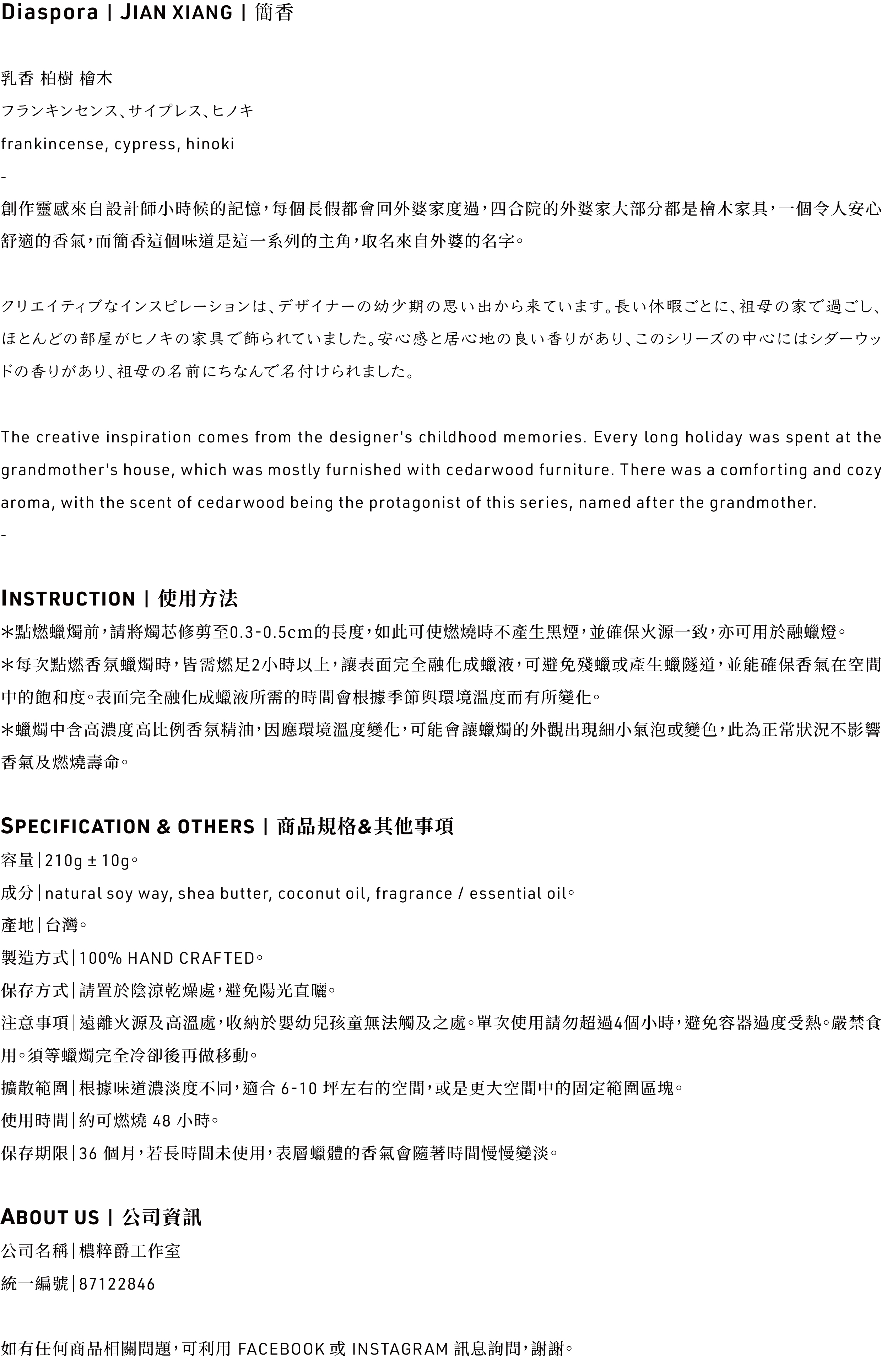 簡香 JIAN XIANG / 工藝香氛蠟燭