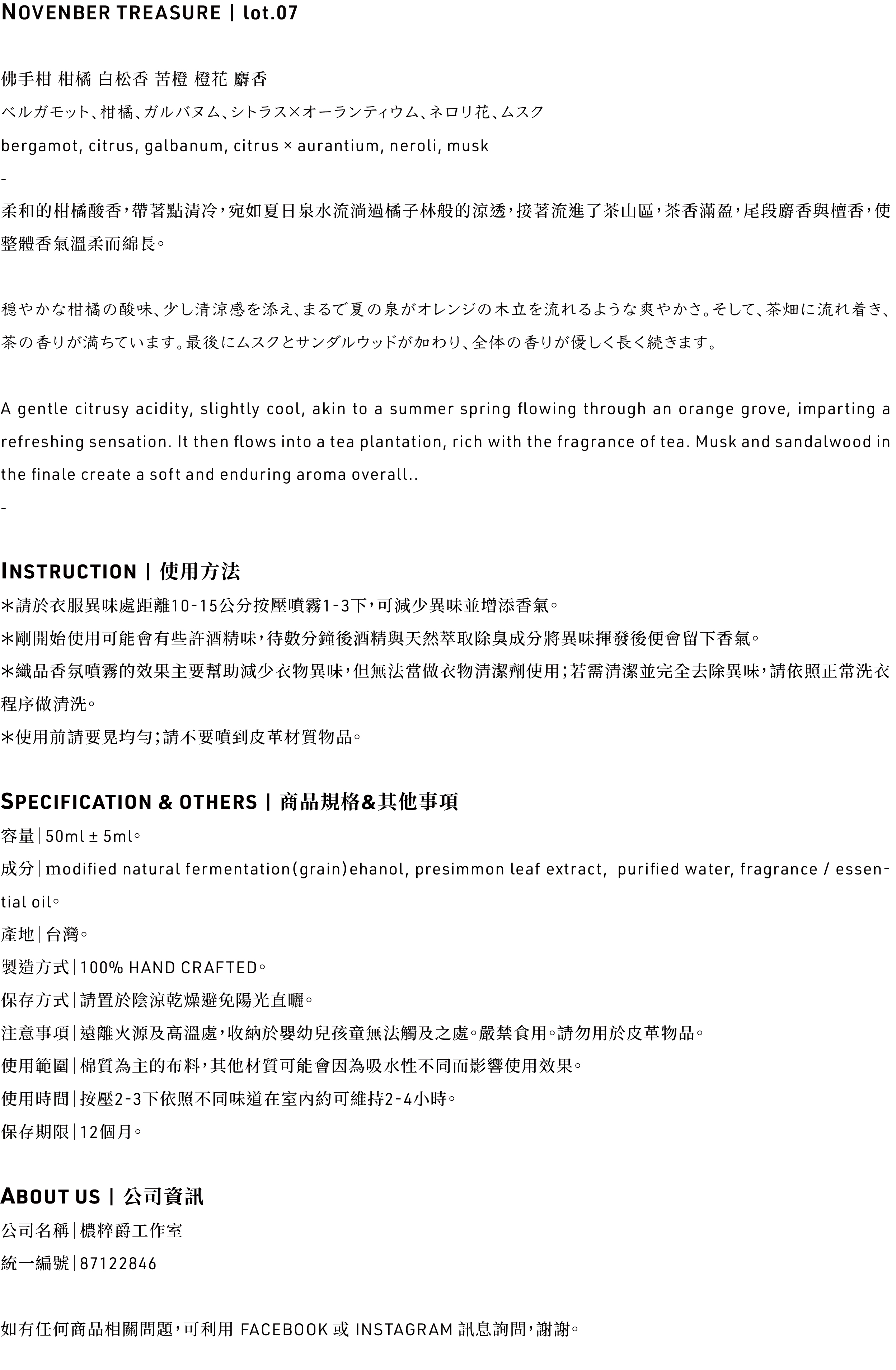 07' NOVEMBER TREASURE / 織品香氛噴霧