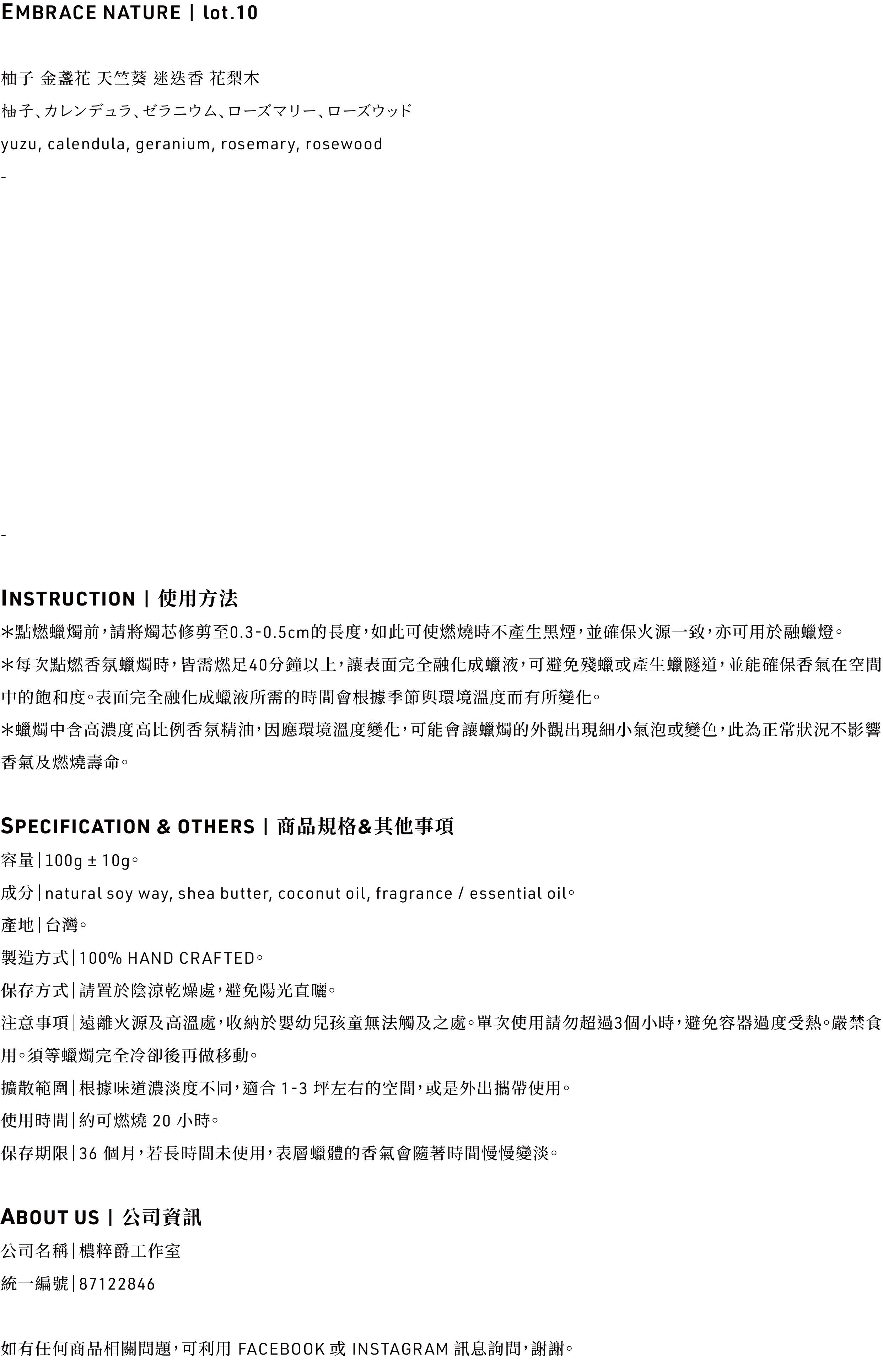 10' EMBRACE NATURE 溫室 / 攜帶型旅行蠟燭