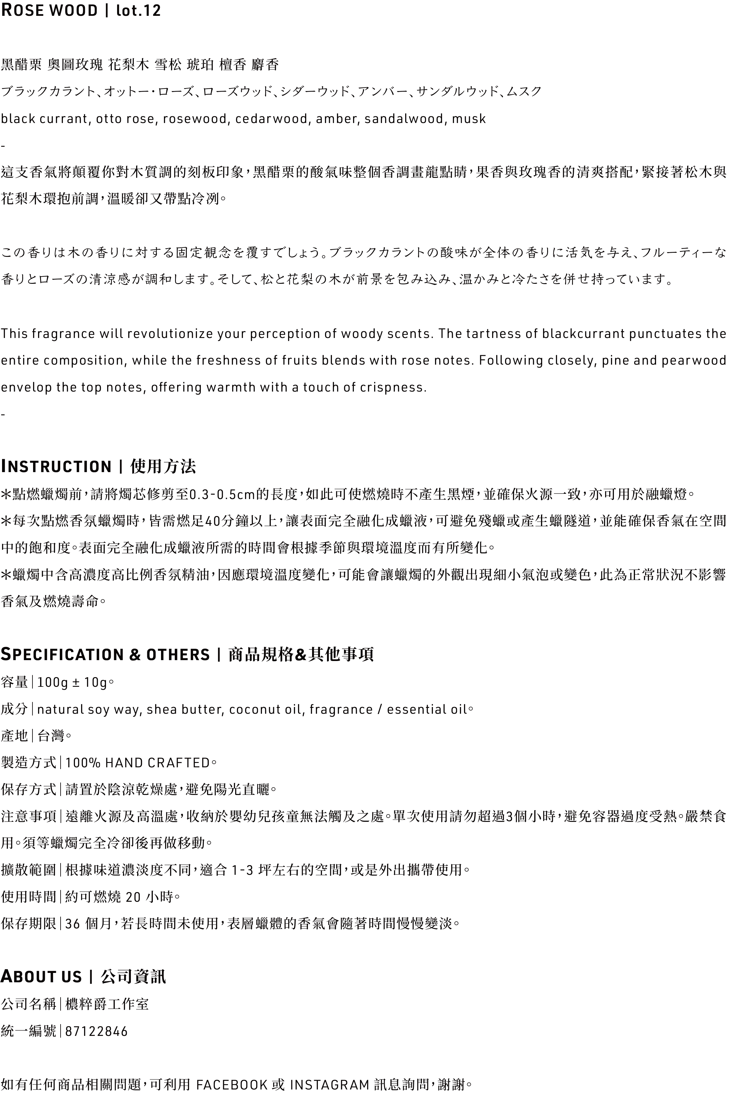 12' ROSE WOOD / 攜帶型旅行蠟燭