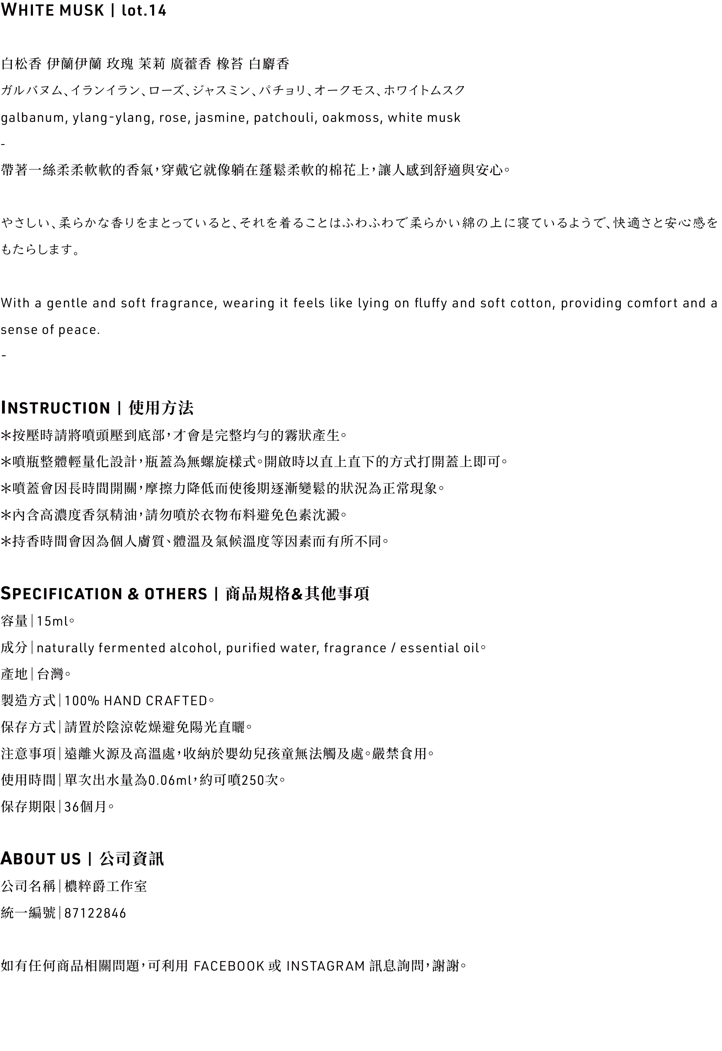 僅需少量使用,便可達到長時間的持香效果,隨身尺寸的設計與容量,方便攜帶無負擔!