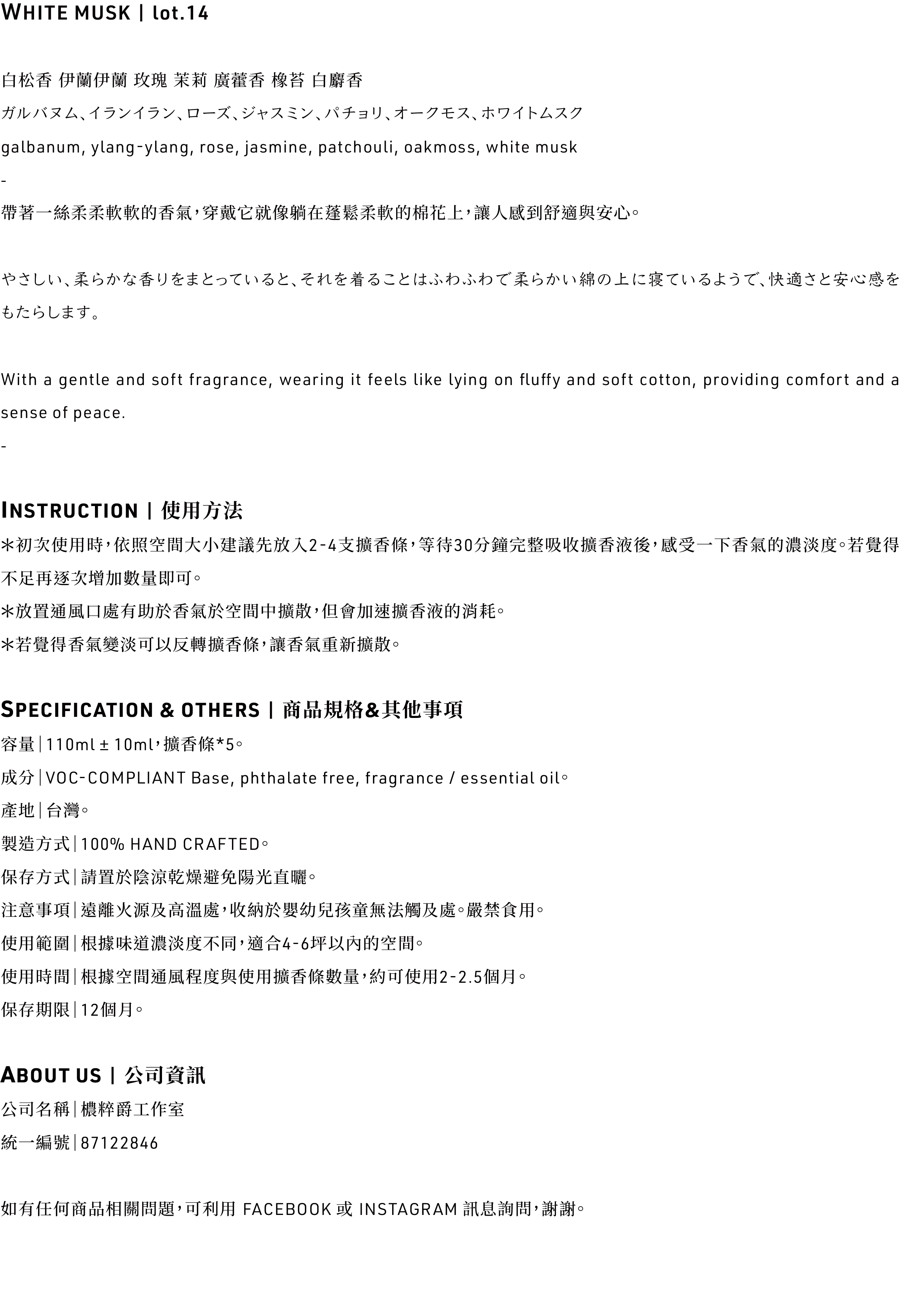 14‘ WHITE MUSK / 空間精油擴香瓶