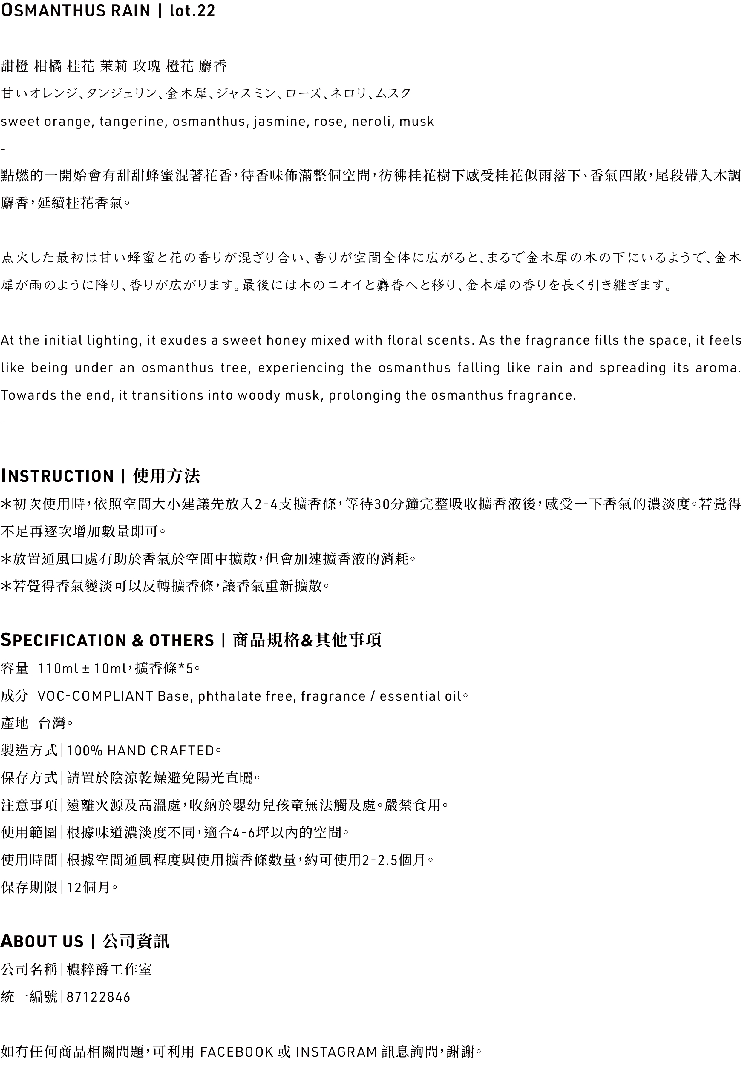 22' OSMANTHUS RAIN / 空間精油擴香瓶