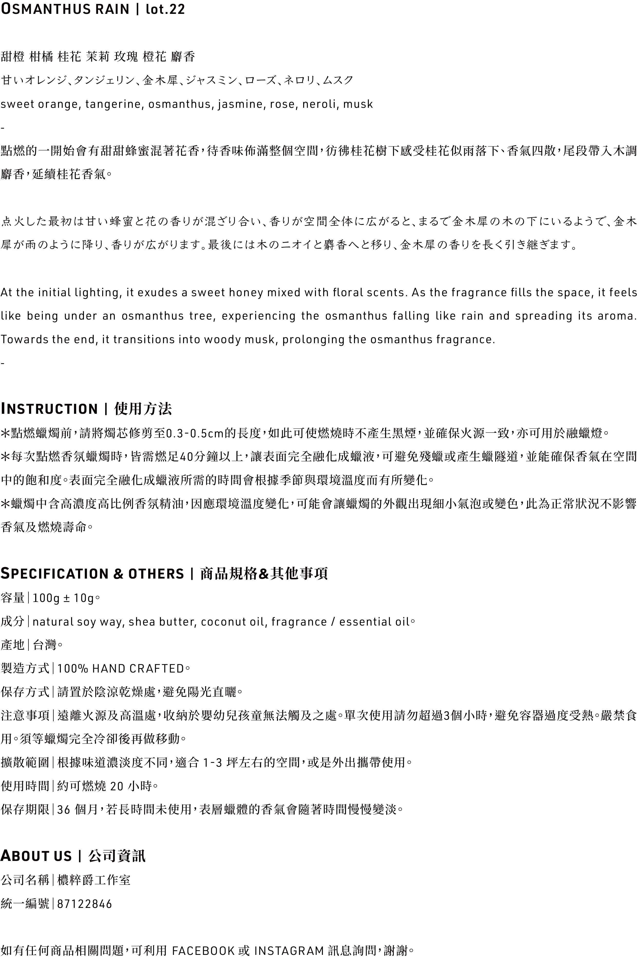 22' OSMANTHUS RAIN 桂花雨 / 攜帶型旅行蠟燭