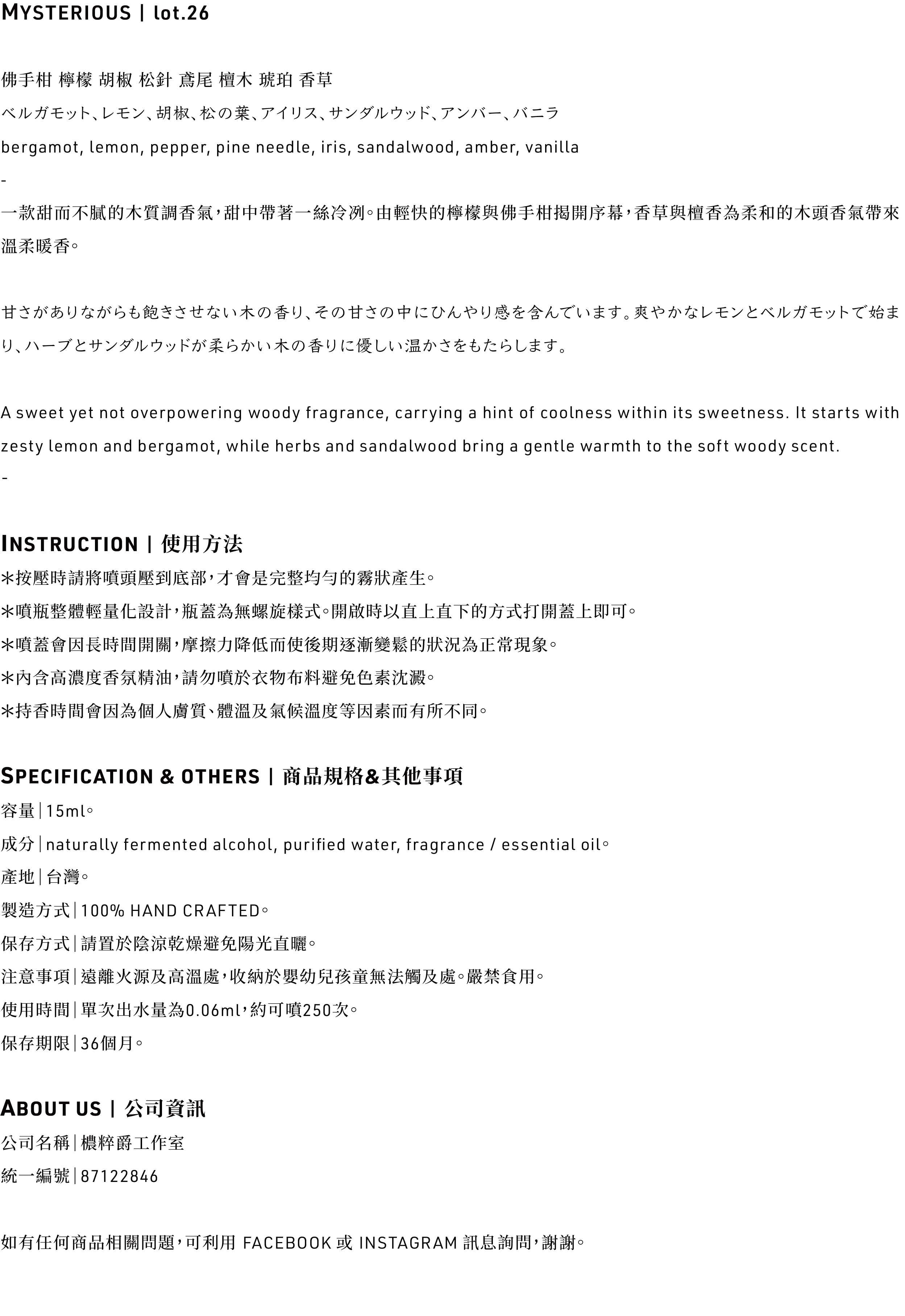 僅需少量使用,便可達到長時間的持香效果,隨身尺寸的設計與容量,方便攜帶無負擔!
