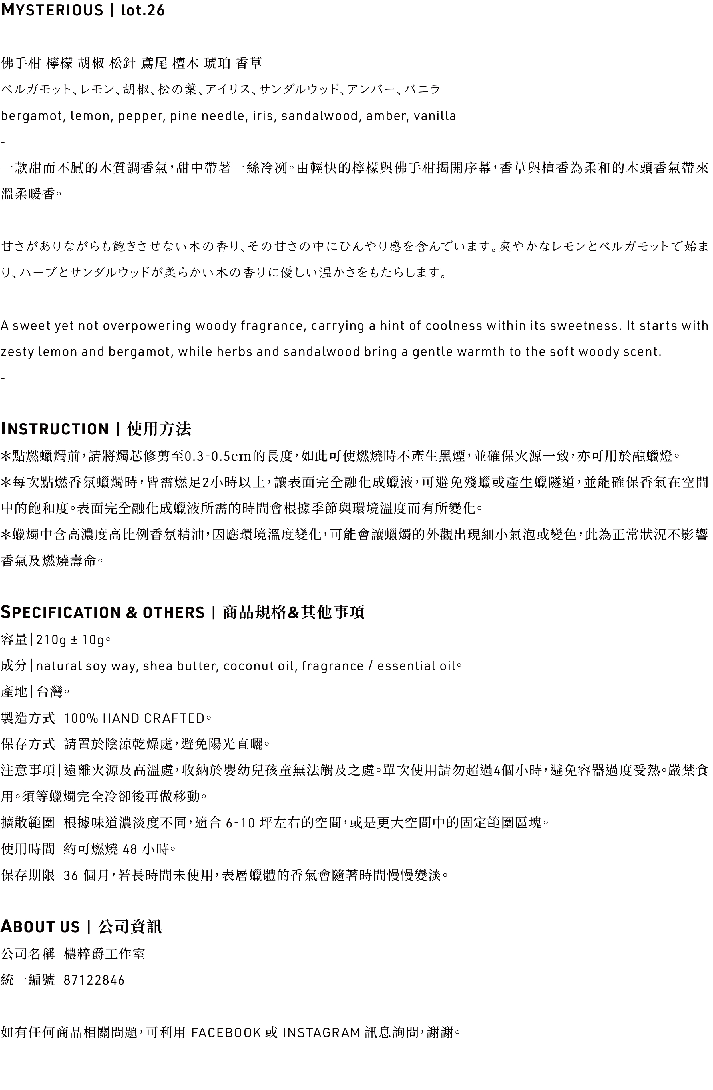 26' MYSTERIOUS / 工藝香氛蠟燭