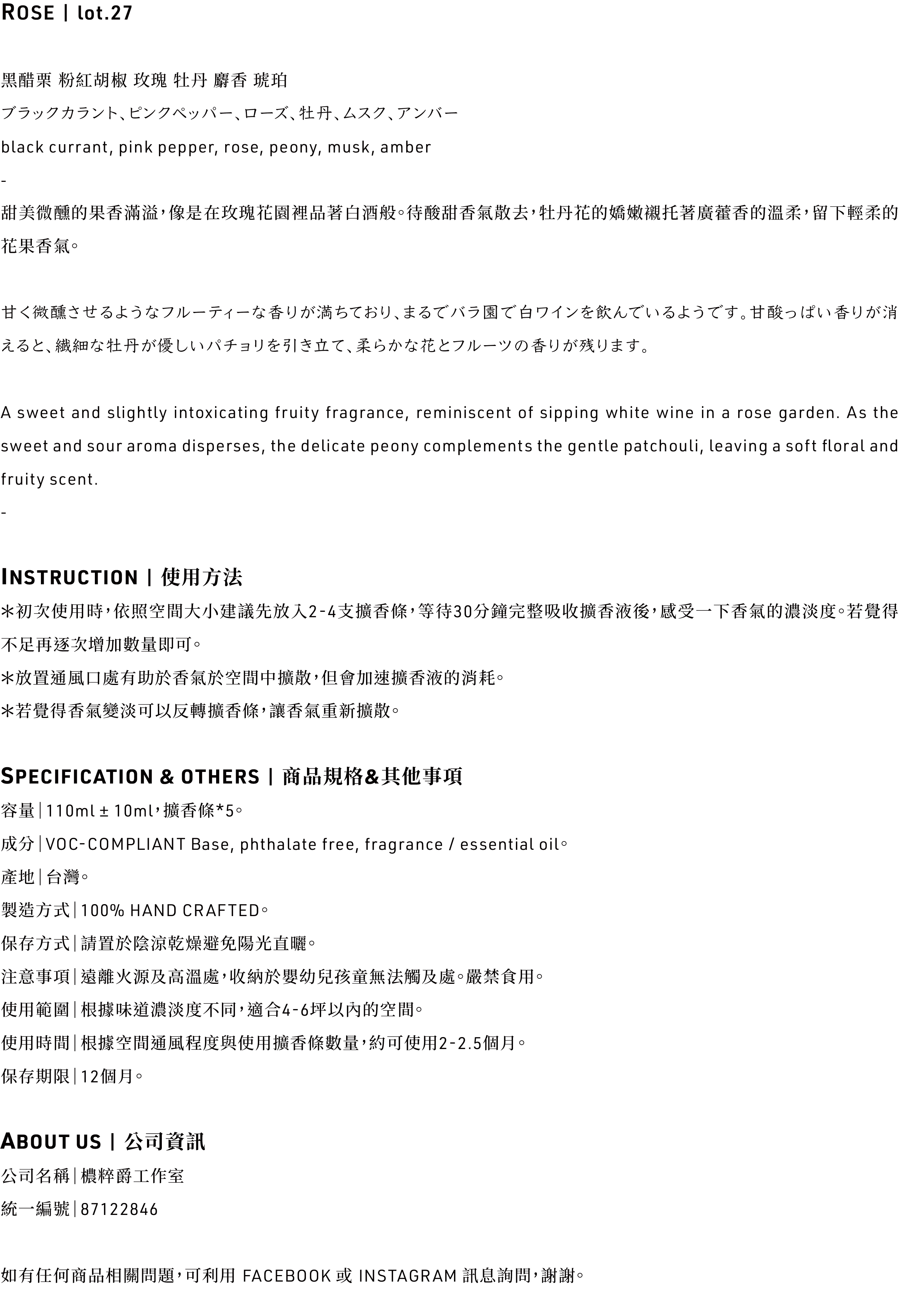 27‘ ROSE / 空間精油擴香瓶