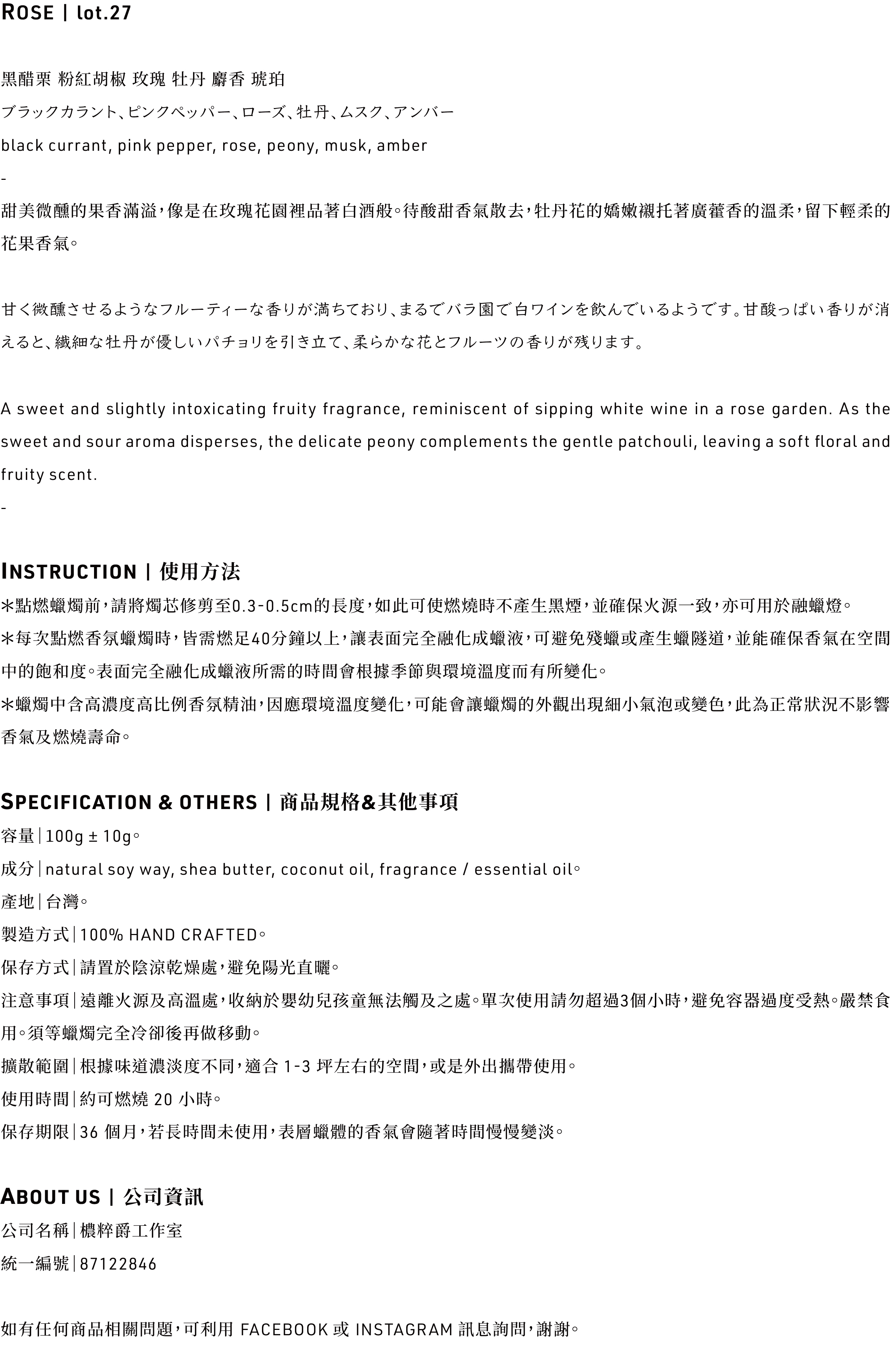 輕巧便於攜帶任何地方,為各個角落創造更完美的香氣! 使用100%植物蠟為基底,獨家配方比例使燭面燃燒平整且不易產生黑煙,採用美國 FSC 認證永續林木生產木芯,燃燒時伴隨清脆的柴火聲響,帶來聽覺、視覺與嗅覺的三重感官享受!