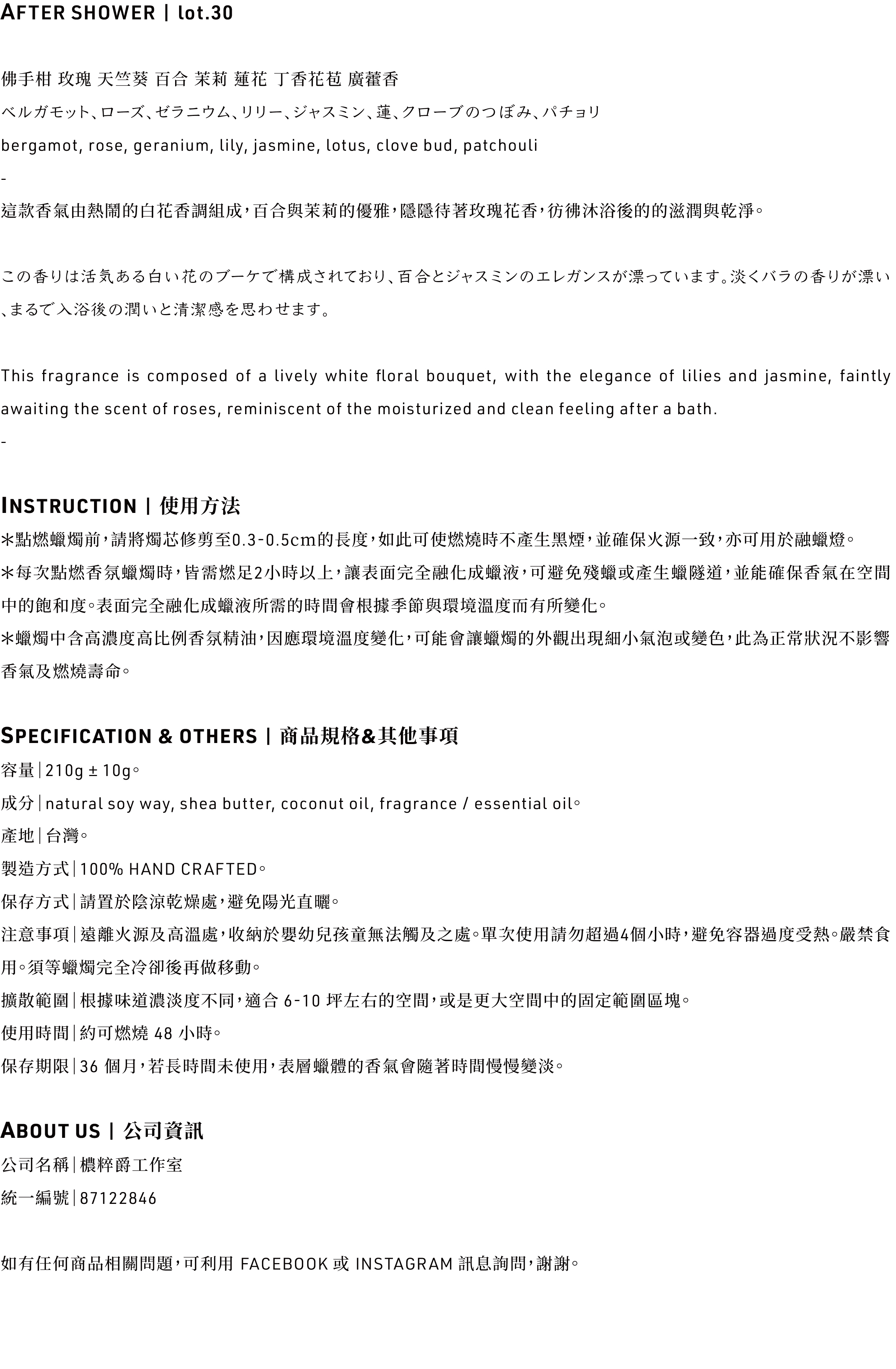 使用100%植物蠟為基底,獨家配方比例使燭面燃燒平整且不易產生黑煙,採用美國 FSC 認證永續林木生產木芯,燃燒時伴隨清脆的柴火聲響,帶來聽覺、視覺與嗅覺的三重感官享受!