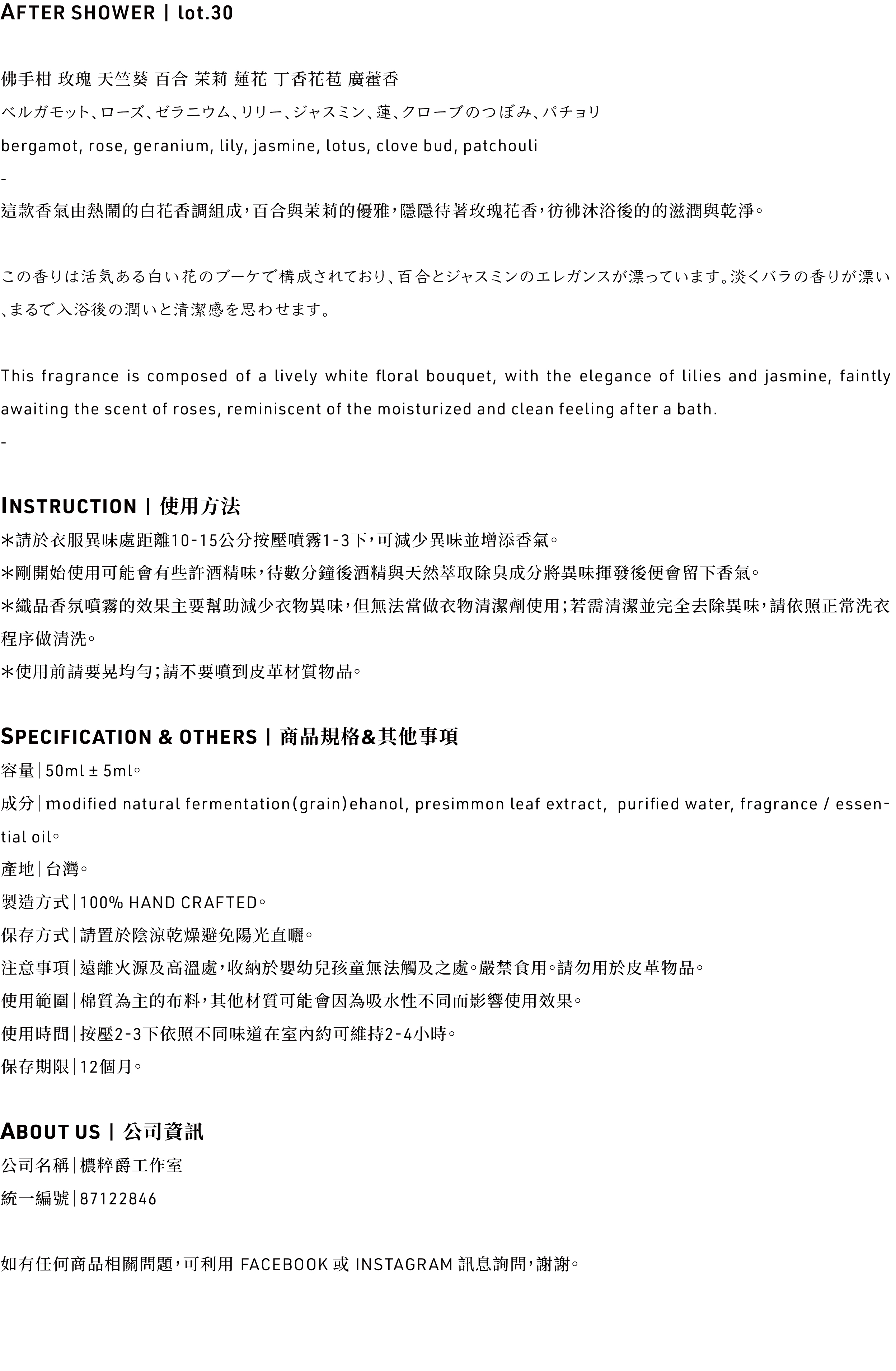 30' AFTER SHOWER / 織品香氛噴霧