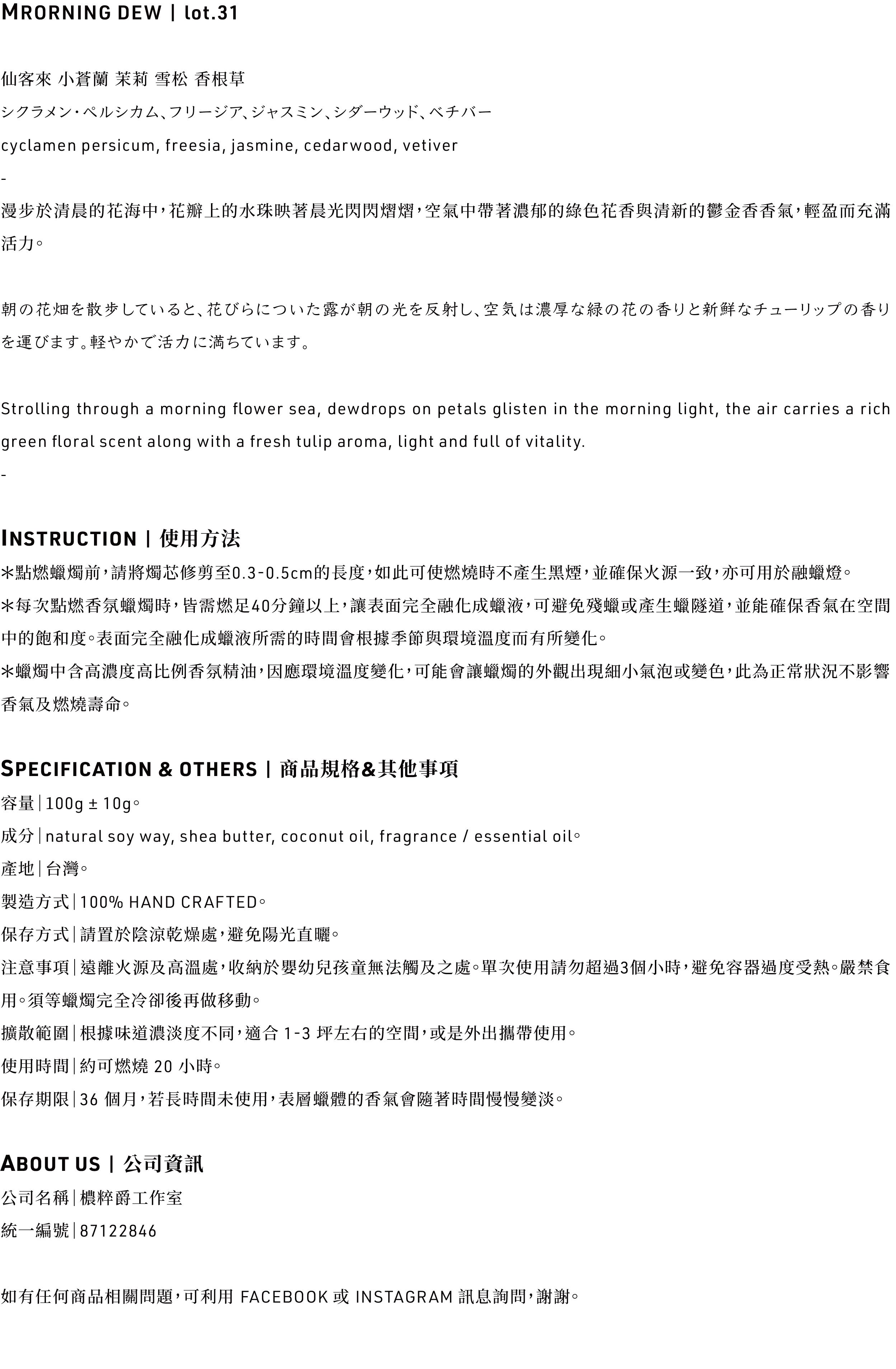31' MORNING DEW / 攜帶型旅行蠟燭