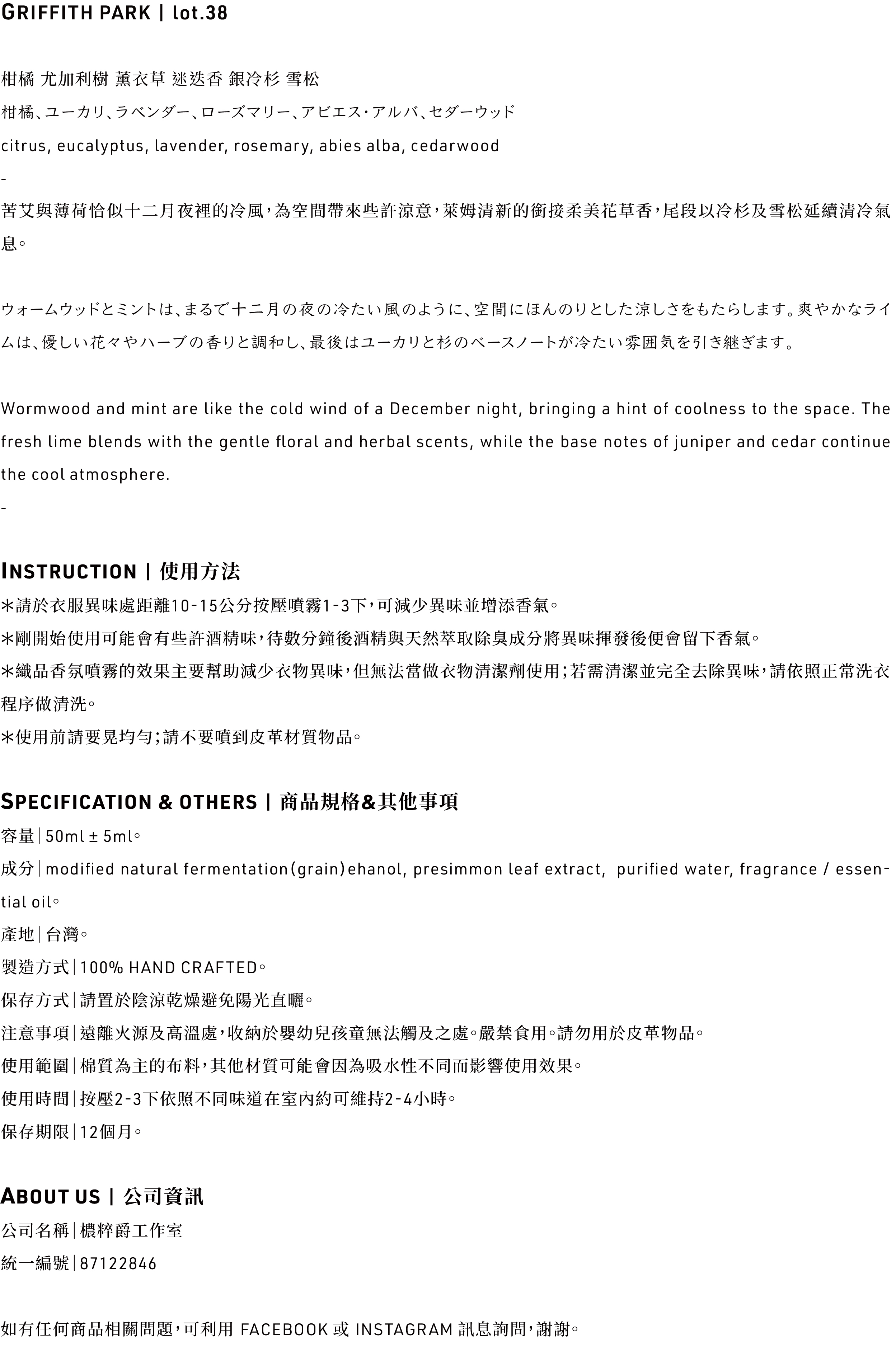 38' GRIFFITH PARK 格里斐斯公園 / 織品香氛噴霧