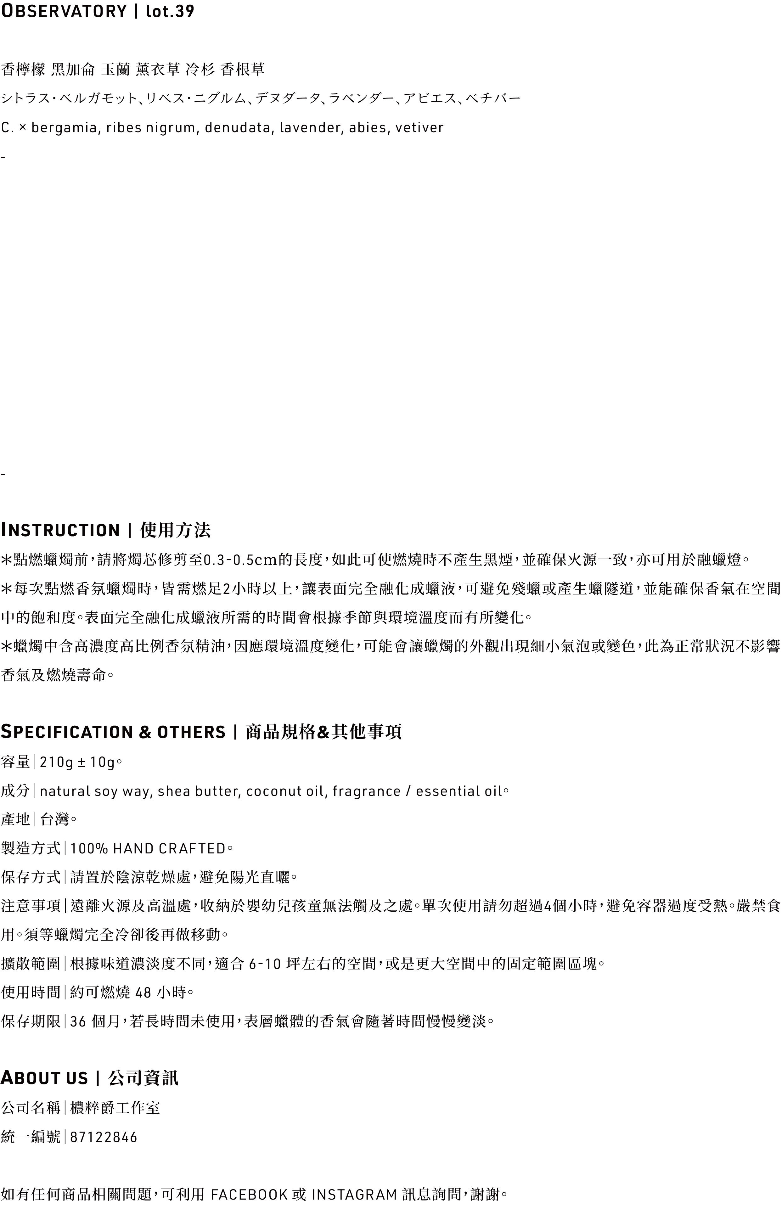 39' OBSERVATORY 天文台 / 工藝香氛蠟燭
