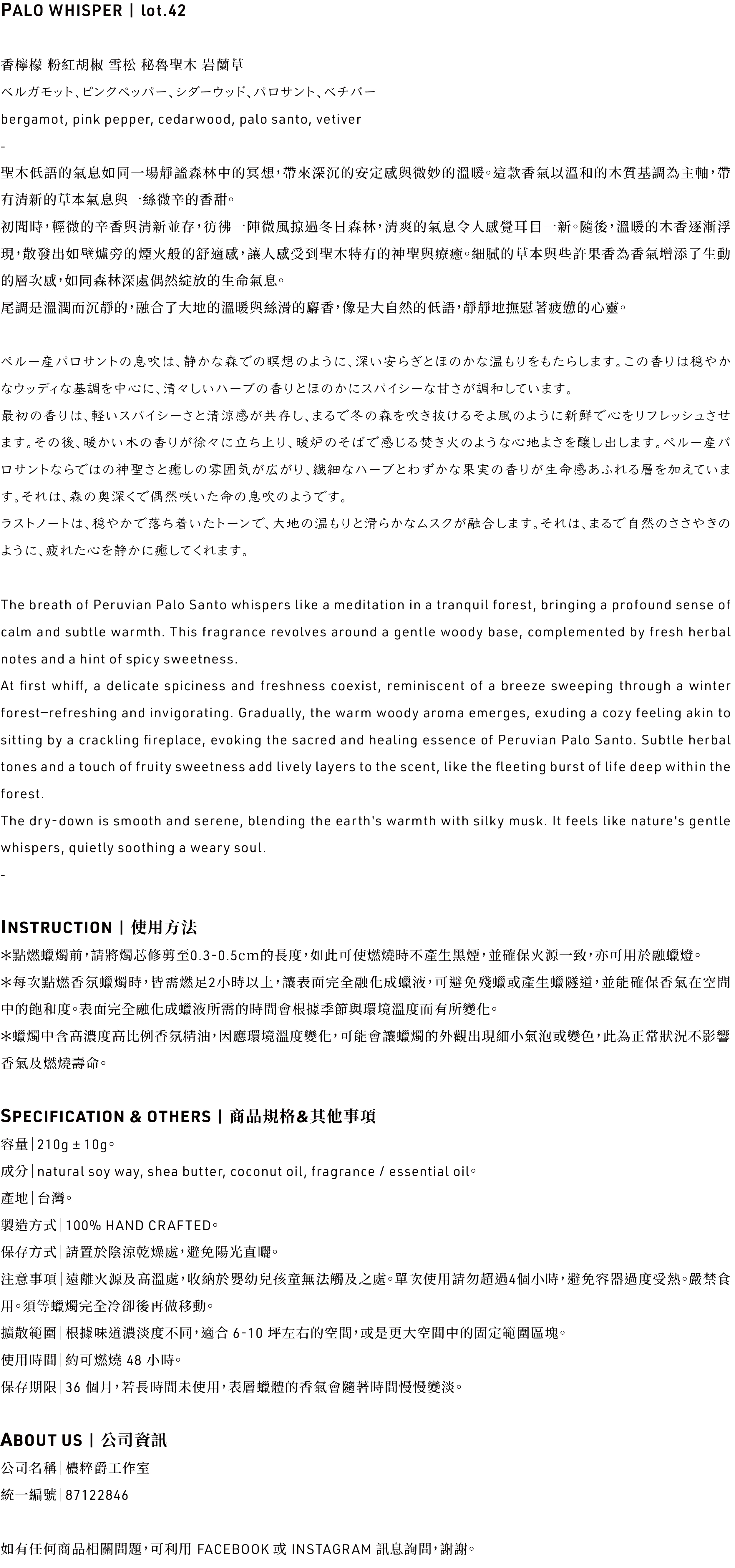 42' PALO WHISPER 聖木低語 / 工藝香氛蠟燭