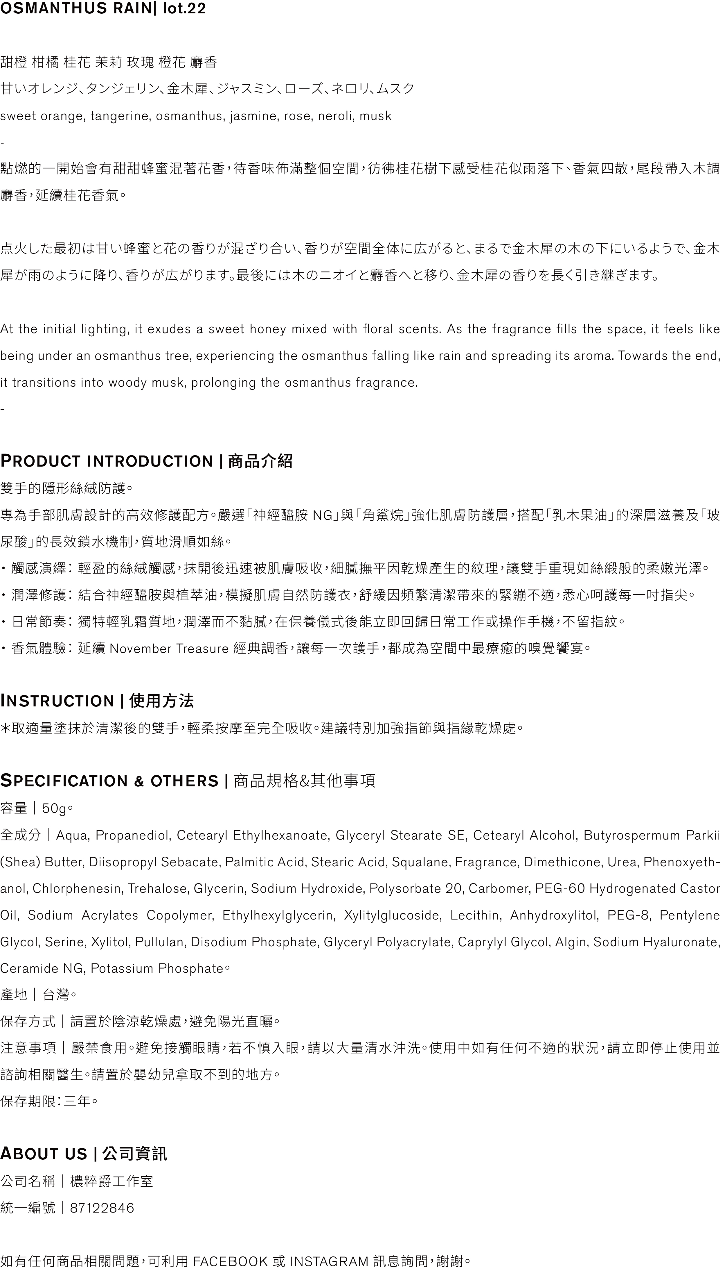Daily Rituals 柔潤保濕護手霜 / 22' OSMANTHUS RAIN 桂花雨