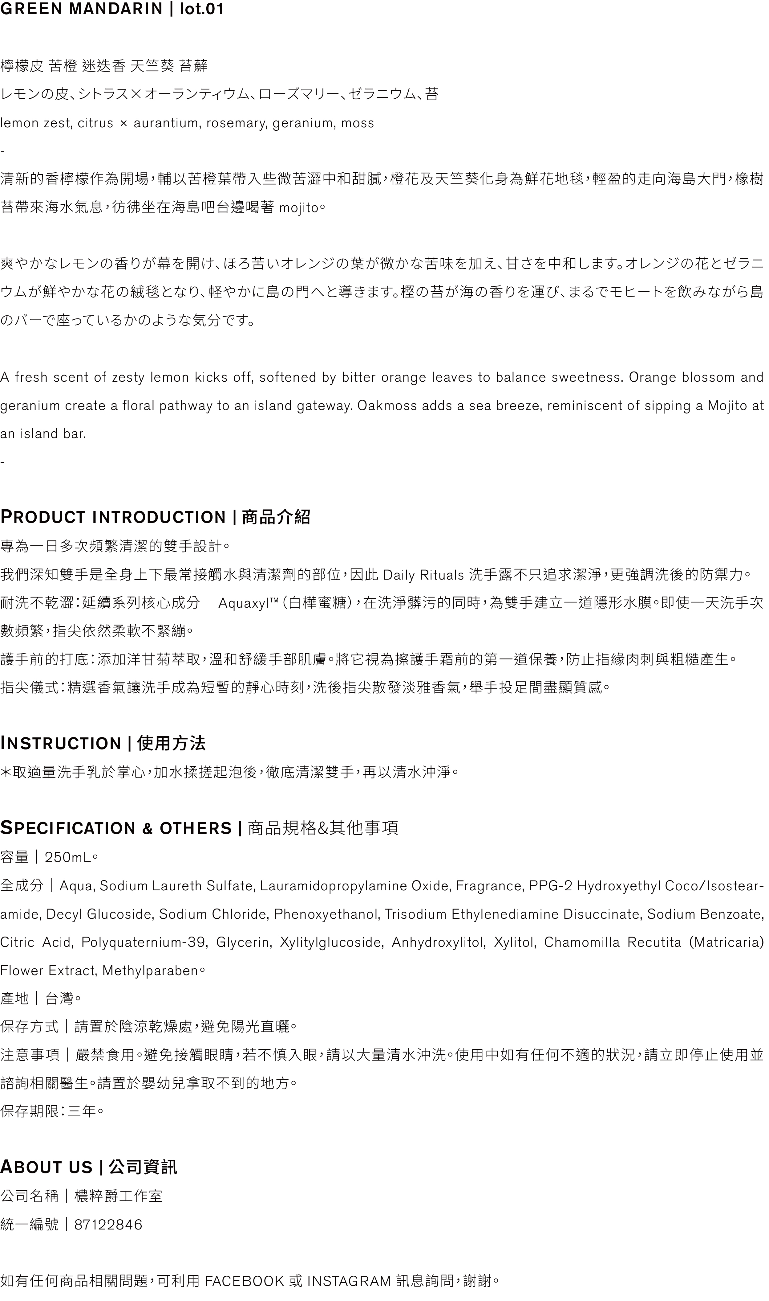 Daily Rituals 手部清潔洗手露 / 01' GREEN MANDARIN