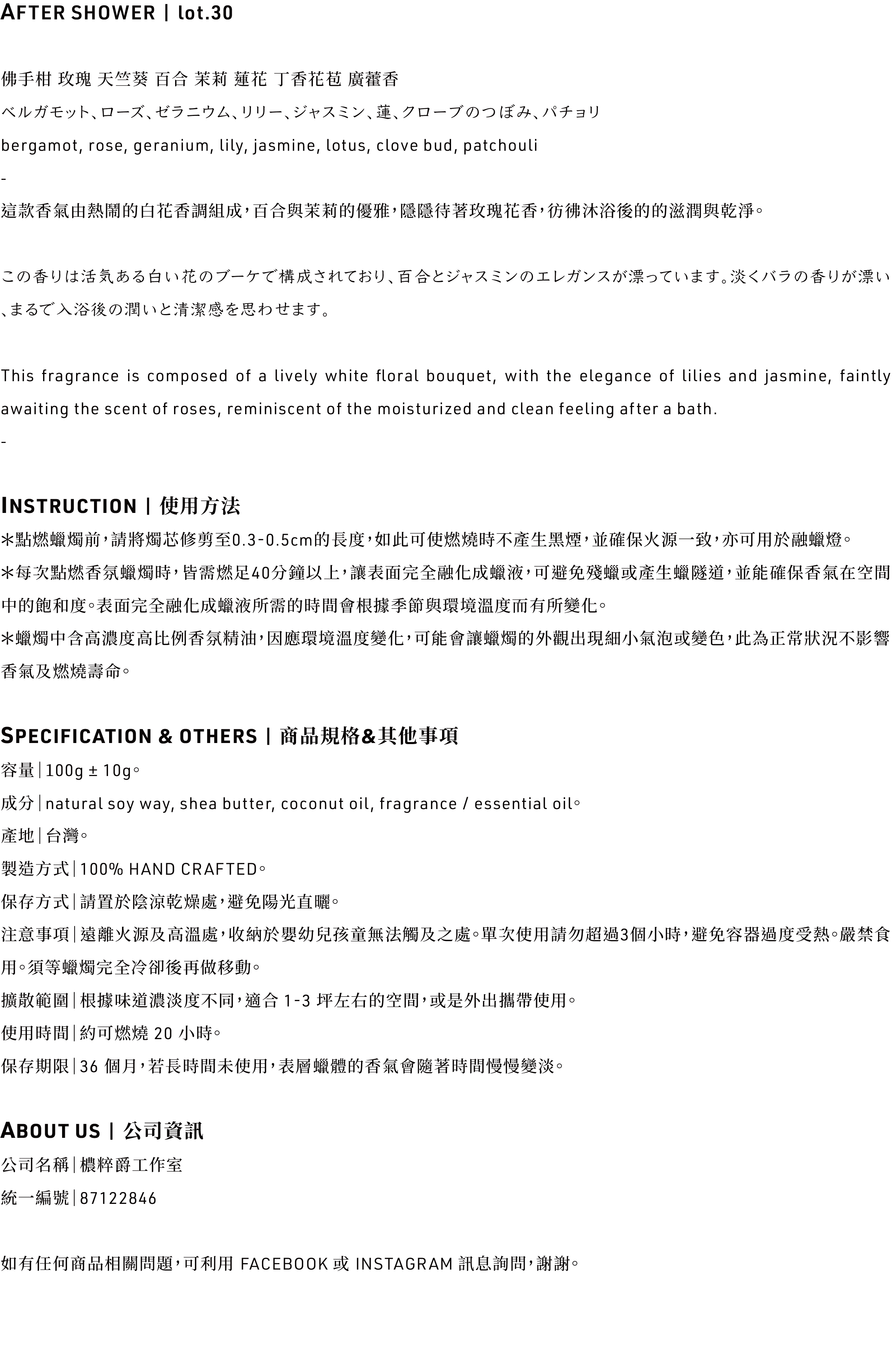 30' AFTER SHOWER / 攜帶型香氛旅行蠟燭