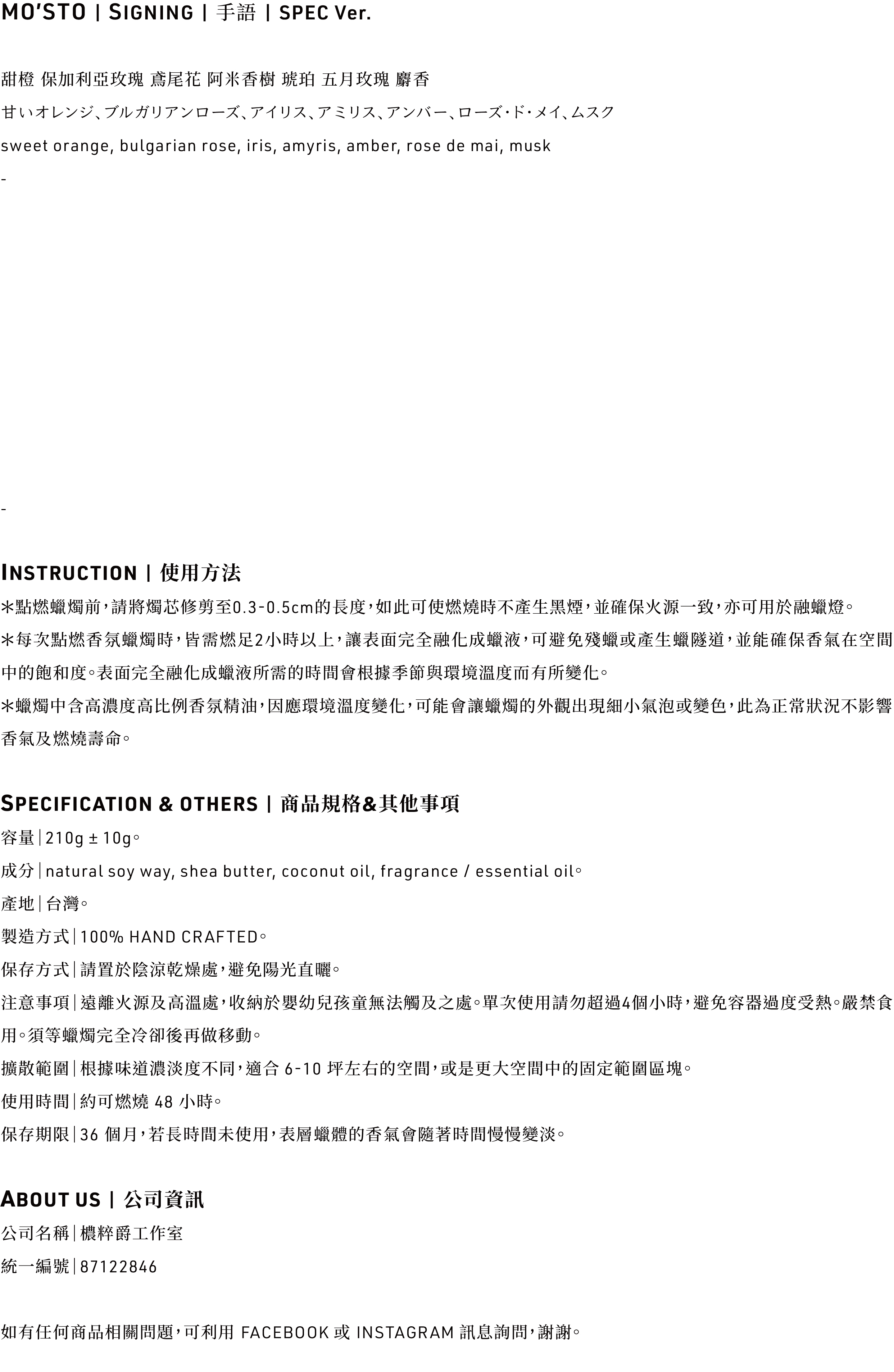 使用100%植物蠟為基底,獨家配方比例使燭面燃燒平整且不易產生黑煙,採用美國 FSC 認證永續林木生產木芯,燃燒時伴隨清脆的柴火聲響,帶來聽覺、視覺與嗅覺的三重感官享受!