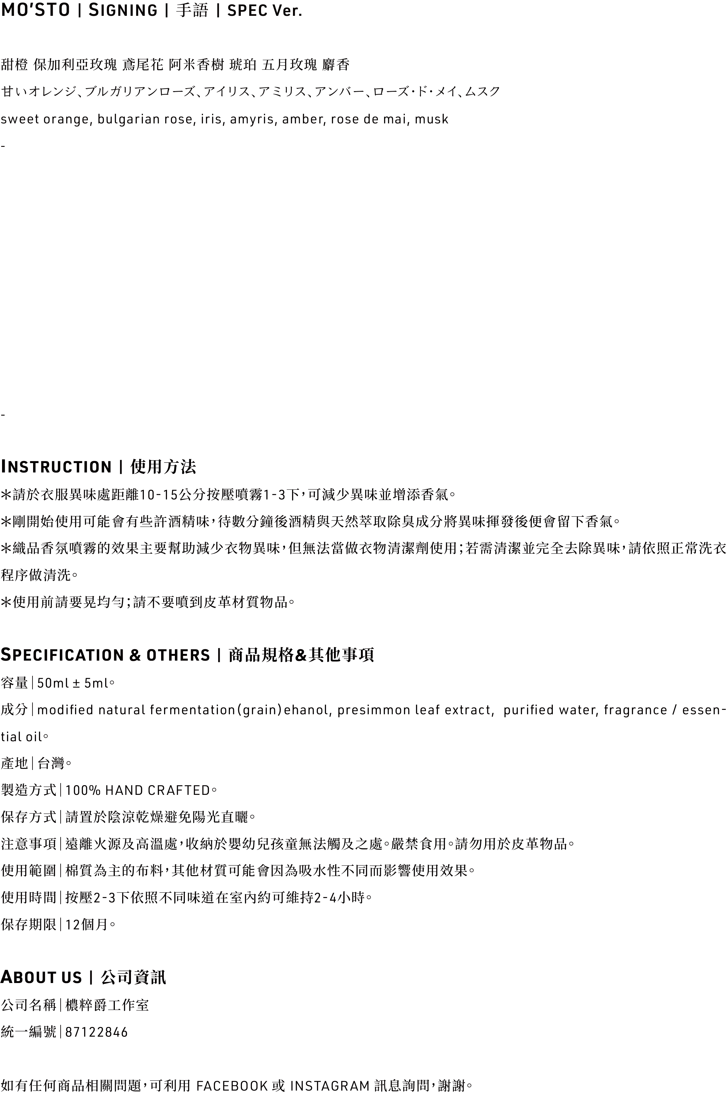 織品噴霧可直接噴灑,只需幾秒鐘就能為布料帶來香氣。舉凡衣服、床單、窗簾、傢俱,天然萃取除臭成分能在短時間內消除異味,輕鬆地將香氣滲透到衣櫃或織品中;亦可作為空間噴霧,留下數小時的優雅氣息!